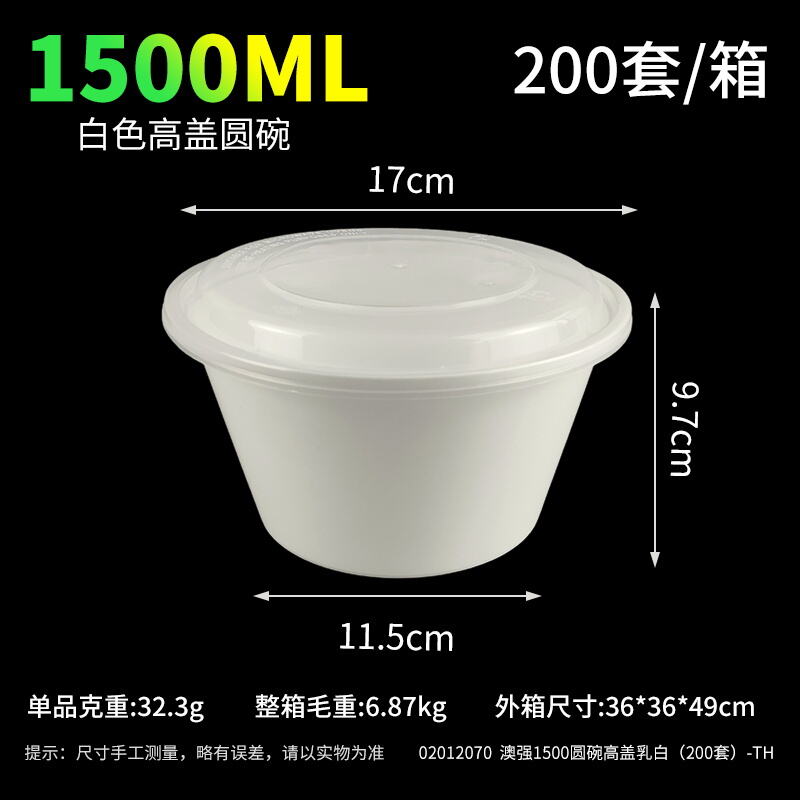 As a trusted manufacturer of food packaging solutions, we are proud to present our 1500ML White Plastic Round Takeaway Bowl – a high-capacity, practical option crafted for storing, transporting, and serving a wide array of hot and cold meals. Ideal for takeaway restaurants, catering services, meal delivery platforms, and daily use, this white round container integrates safety, durability, and functionality to meet the diverse needs of commercial and personal food packaging.