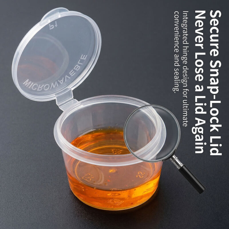 Takeaway restaurants and fast food chains will benefit from the cups’ leak-proof hinge lid, which prevents sauce spills during delivery. The assorted 1oz to 5oz sizes fit all condiment needs, from small portions for fries to larger portions for salads. The disposable design saves time on cleaning, aligning with the high-volume needs of busy operations, while the food-grade plastic ensures safety for all sauces and condiments.