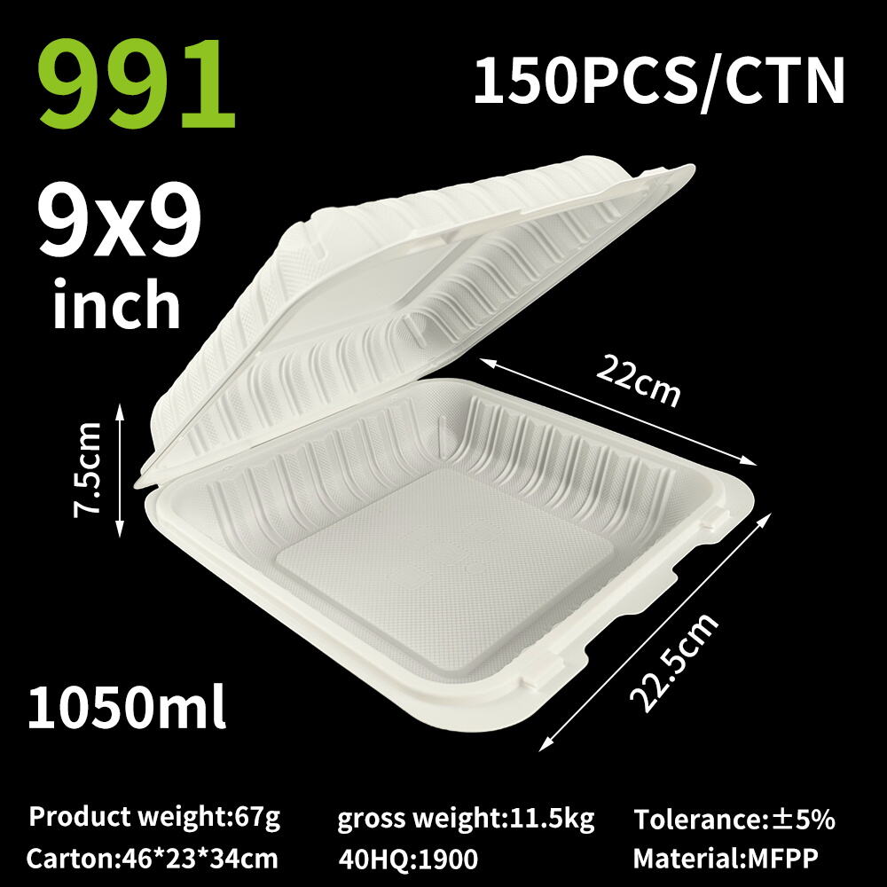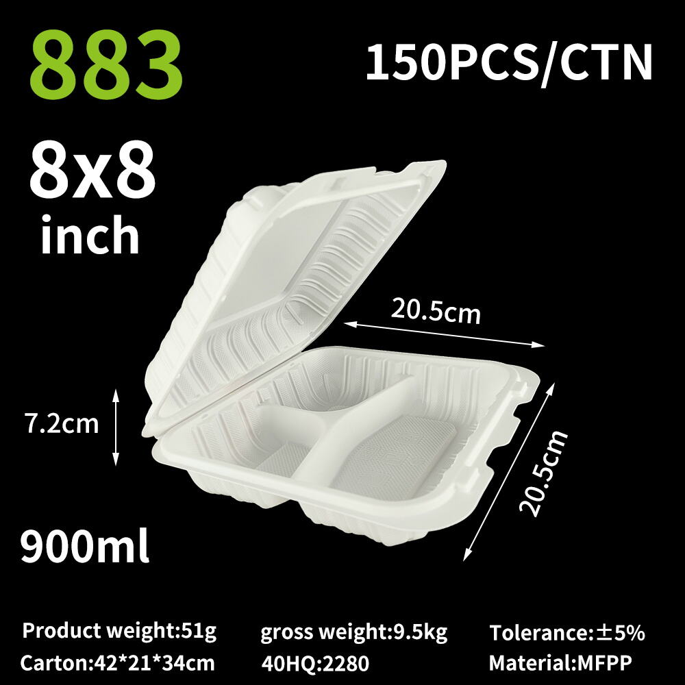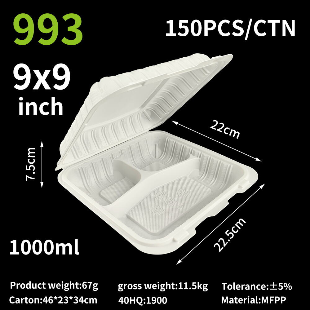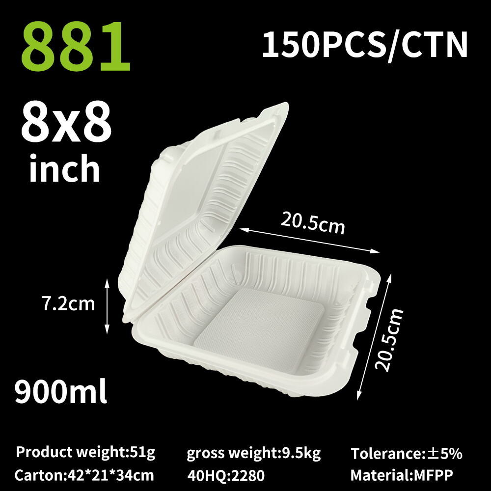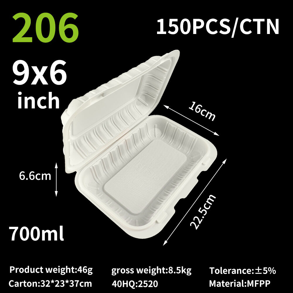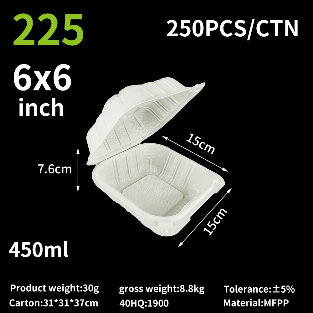Dizajnirane su za brze potrebe trgovina hamburgerima i lanca brze hrane, naše kutije su potpuno jednokratne, što eliminira potrebu za čišćenjem, sanitarnim uređajima i skladištenjem spremnika za ponovno korištenje. To štedi dragocjeno vrijeme i troškove rada, omogućavajući vašem timu da se usredotoči na pripremu i isporuku ukusnih hamburgera. Dizajn za jednokratnu upotrebu također osigurava maksimalnu higijenu, smanjuje rizik od unakrsne kontaminacije i ispunjava stroge higijenske standarde industrije prehrambenih usluga. Unatoč tome što su jednokratne i biološki razgradljive, naše kutije su dovoljno čvrste za jednokratnu upotrebu, izbjegavajući krhkost koja pogađa nisko kvalitetne biološki razgradljive ambalaže.