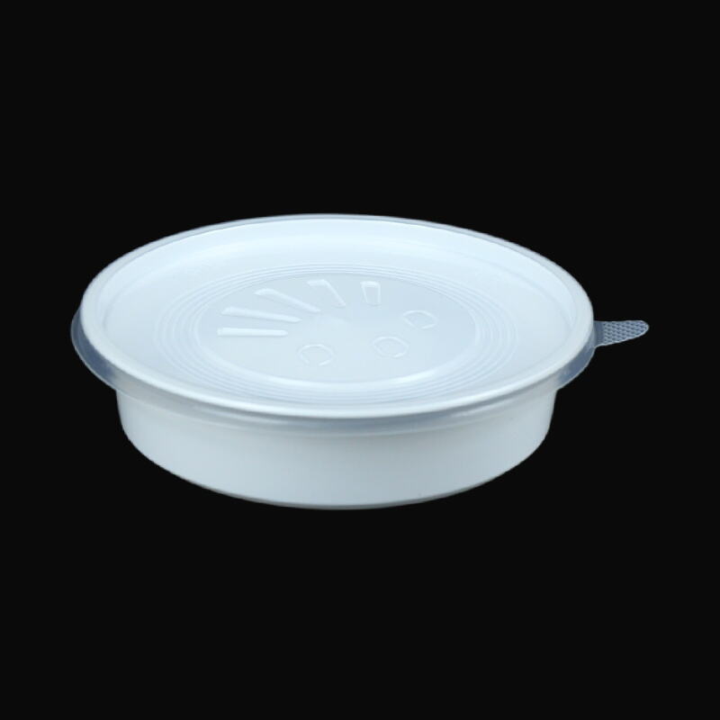 အစားအသောက်အတွက် လုံခြုံသော PP ပစ္စည်းဖြင့် ပြုလုပ်ထားသော အိမ်သို့ယူသုံးရန် အစားအစာ ထည့်သော ပန်းကန်။ နံရံများ ထူထောင်သော ပုံစံဖြင့် ပြုလုပ်ထားခြင်း၊ အဖုံဖုံများ၊ အဖုံဖုံဖြူသော အဝိုင်းပုံ ပန်းကန်နှင့် မိုက်ခရိုဝေးဖ်တွင် အသုံးပြုနိုင်သော