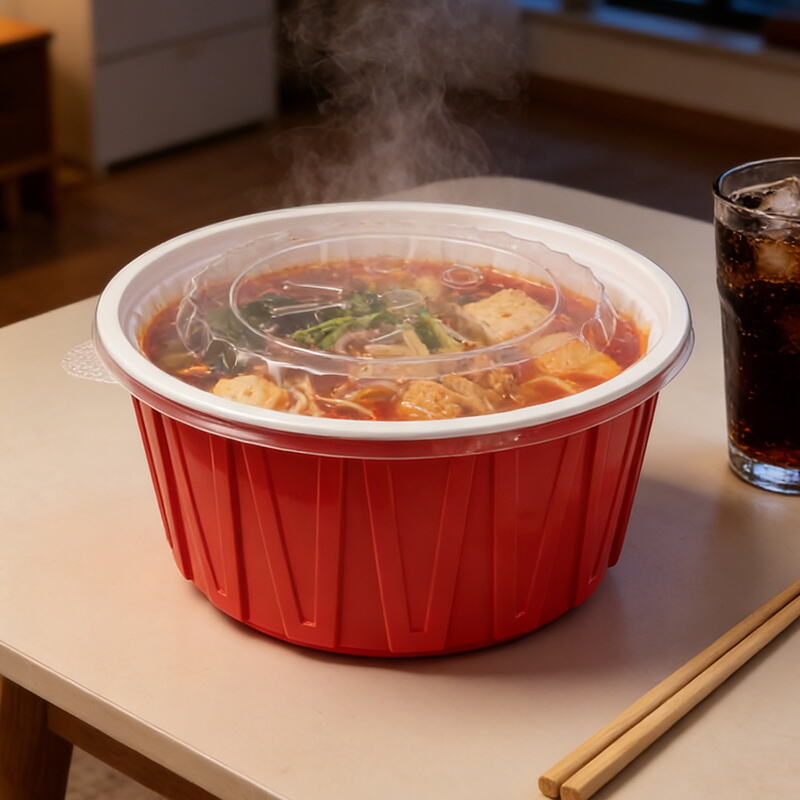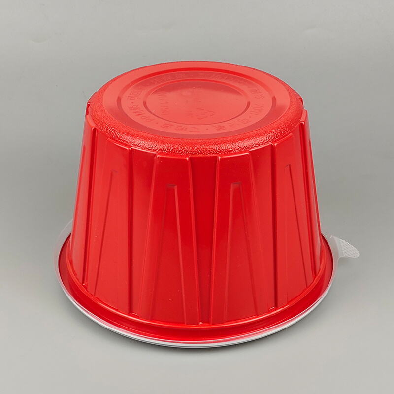 Red Round Plastic Bowl with Lid Diamond Pattern Food Container Takeaway Packaging