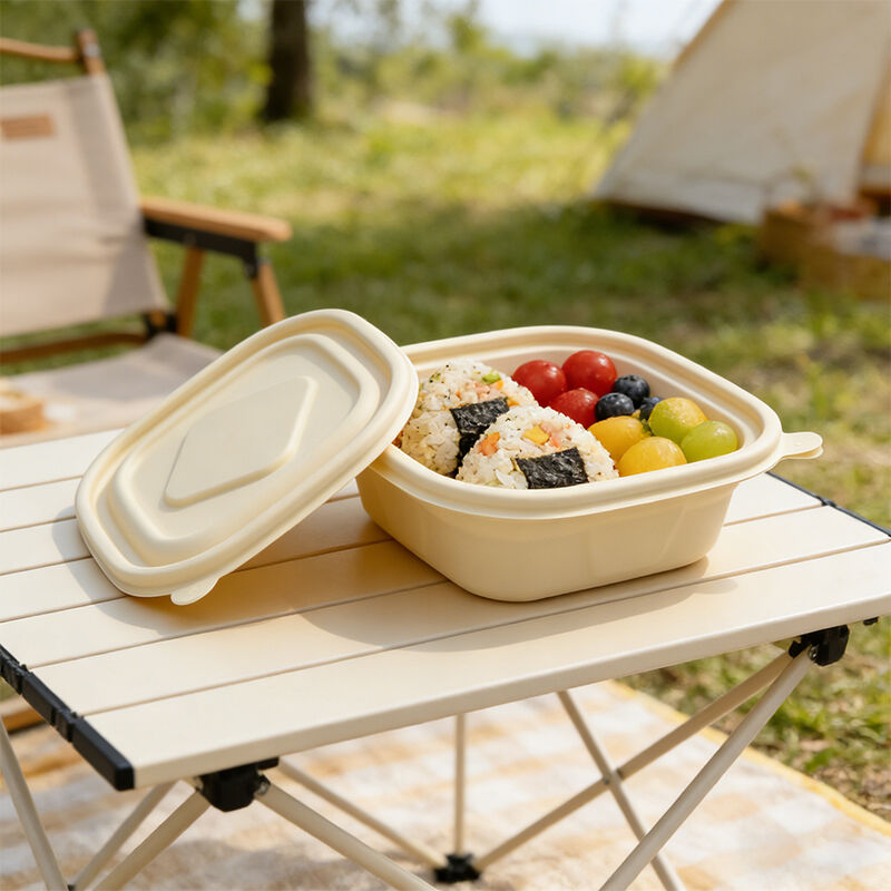 The star feature of our rice lunch box is its high-quality corn starch biodegradable material— a sustainable alternative to traditional non-degradable plastic. Made from 100% natural corn starch, this material is fully biodegradable and compostable: it breaks down into harmless organic matter in soil or industrial composting environments within 3-6 months, eliminating plastic pollution and aligning with global environmental protection trends. Additionally, it is strictly food-grade, non-toxic, odorless, and BPA-free, complying with international food safety certifications including FDA (U.S. Food and Drug Administration), LFGB (German Food and Feed Code), and China’s GB 4806.12-2022 standard for biodegradable food contact materials. It is safe for contact with hot rice, soups, and sauces, ensuring no toxic substances leach into meals and preserving the authentic flavor of rice dishes.