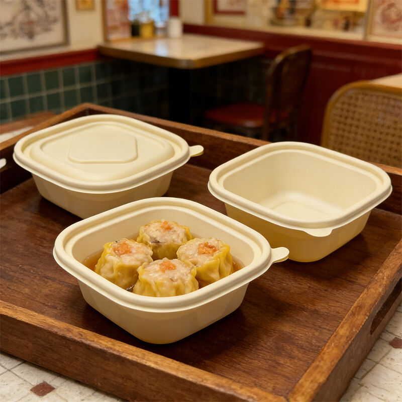 In 2026, sustainability and practicality are key drivers of success in the rice takeout industry. Our Square-shaped Corn Starch Biodegradable Rice Lunch Box— one-time takeout box with a lid for thick lunch containers— combines corn starch biodegradability, square practicality, thickened durability, airtight freshness, and one-time use convenience, helping you build customer trust, enhance brand image, and outperform competitors in the eco-friendly takeout market.